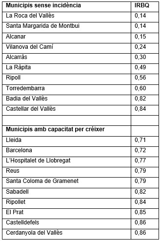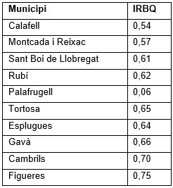 Doncs bé, si heu llegit o consultat els meus mapes i llistats podreu veure que aquests municipis tenen l’índex d’implantació del bàsquet (IRBQ) següent: